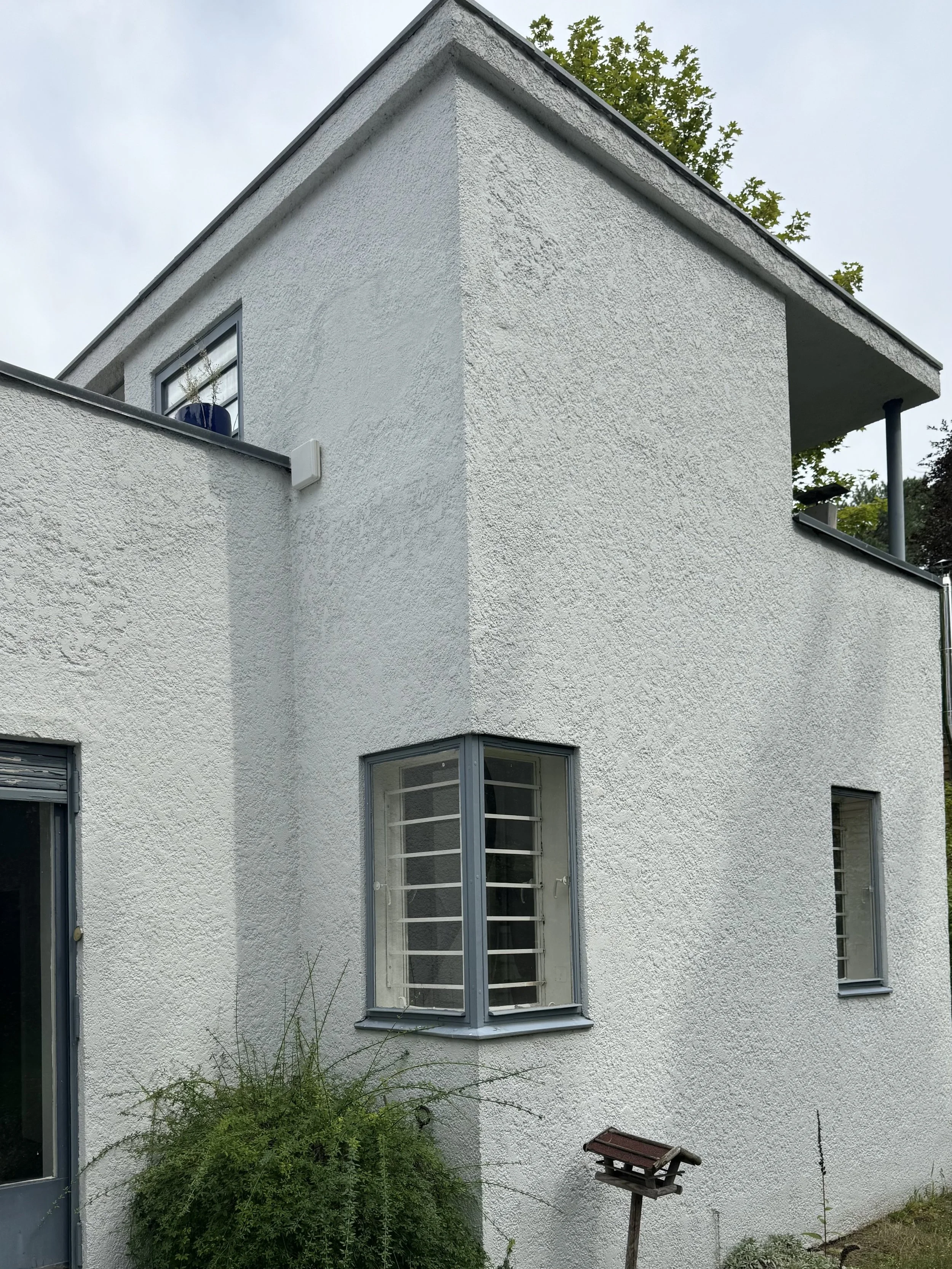 After completion of the shell, the clients reportedly lost confidence in Behrens, finding elements of the design too unconventional; notably, the original plans did not include a kitchen (Marcel Breuer, p. 92). While the building was largely executed according to Behrens’s design, Marcel Breuer was subsequently commissioned to revise aspects of the floor plan and to design the interior and furnishings.