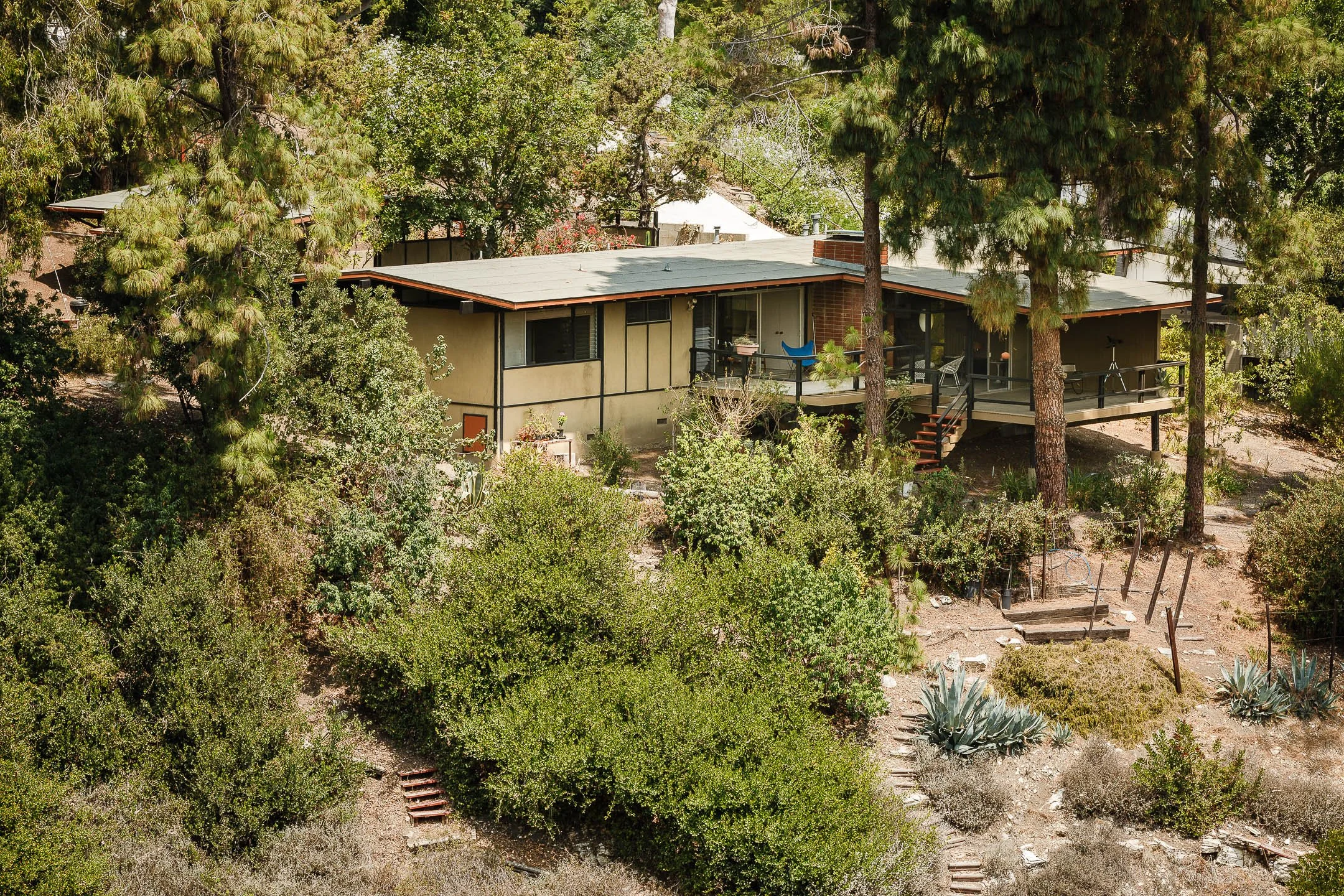 The Mitchell Residence, by architects Buff, Straub & Hensman (1959). Offered for only the second time since being built. It has been lovingly cared for and miraculously it remains in almost entirely original condition. Situated on more than an acre in Rolling Hills Estates, the house embraces a tranquil and incredibly private setting with expansive floor to ceiling glazing. Exterior and interiors have been blended together seamlessly, with living spaces and adjacent decks placed amidst the towering pines to bring nature into every room. A split level delineates the open plan dining area, family room, and kitchen from the sunken living room and its monumental fireplace with cantilevered mantle. The details are exceptional: signature post and beam vocabulary, translucent glass screening, original light fixtures, and clever and abundant built-in cabinetry. Mature California native plantings populate the surrounding gardens. An idyllic canyon retreat with panoramic city and mountain views, ocean breezes, and a sense of solitude that belies its close proximity to the vibrant beach communities nearby.