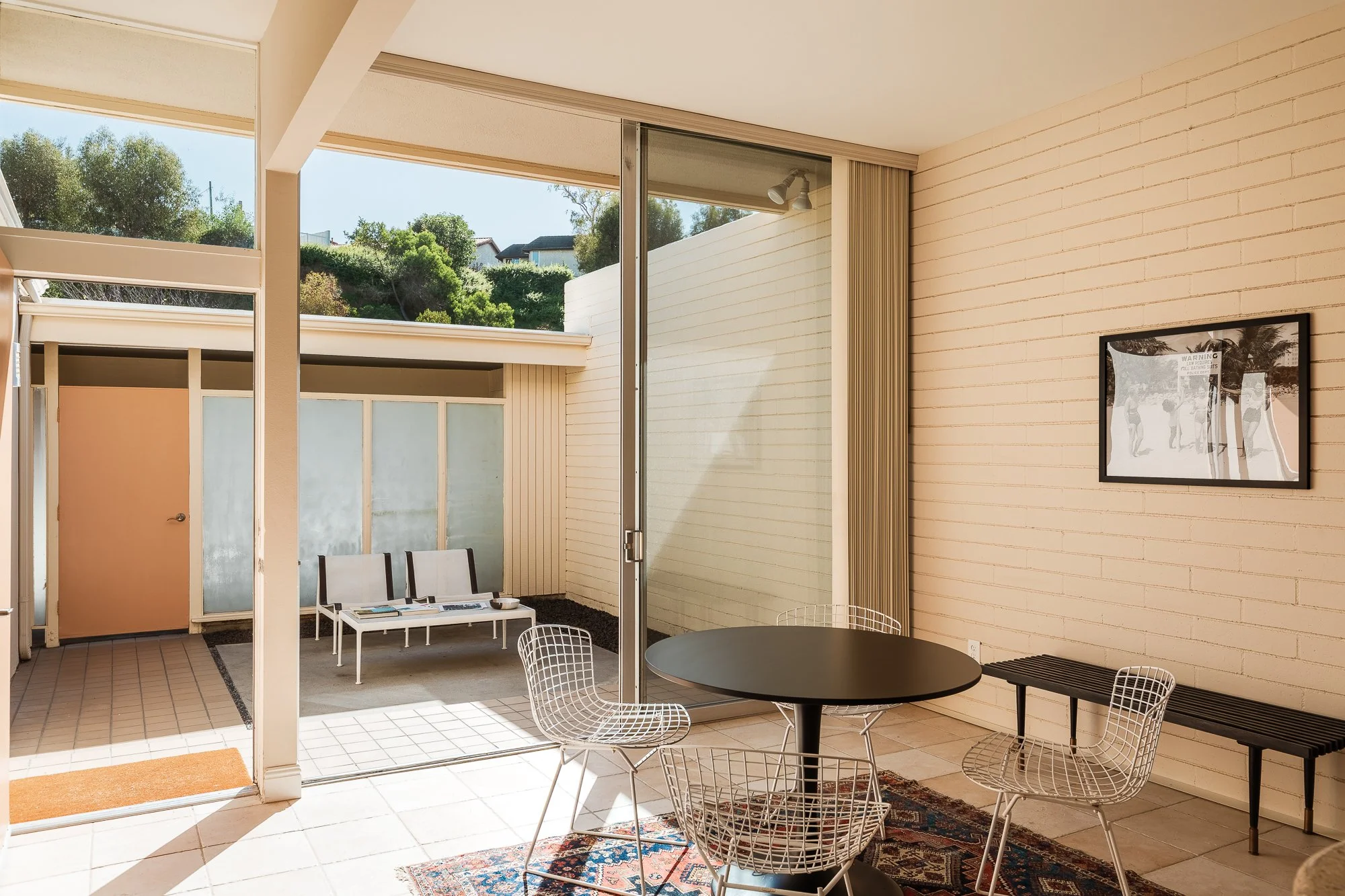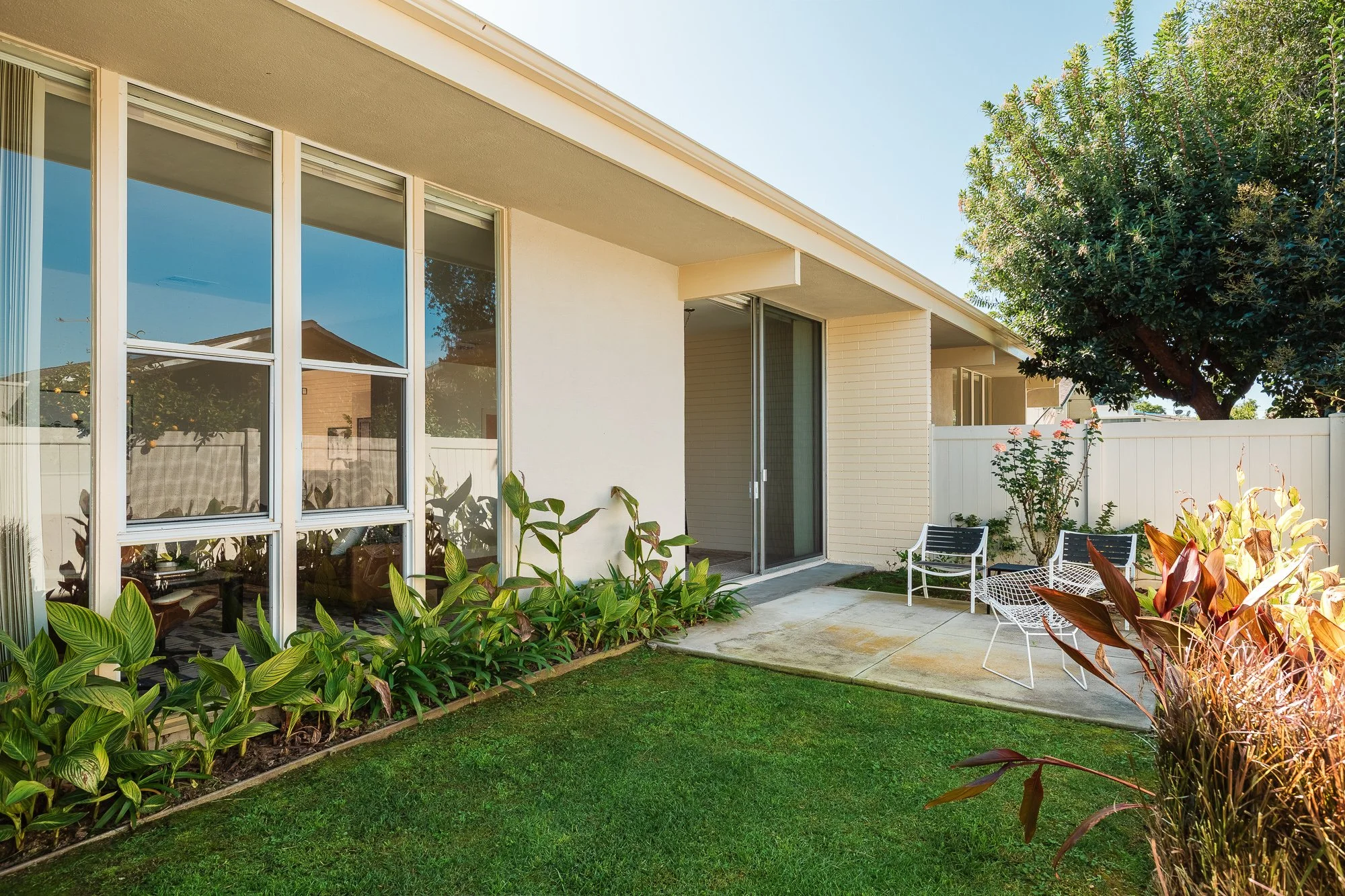 Located in Long Beach's highly desired Los Cerritos/Virginia Country Club neighborhood- a single story Clifton Jones Jr. designed garden duplex. Known as Cerritos Circle, the architect's distinguished tract of mid-century modernist post and beam duplexes were developed in the early 1960s on land that once served as pasture and training facilities for the family's thoroughbred racehorses. The designs were clearly influenced by the architect's studies at the USC School of Architecture and the formative Case Study house program. With expansive open plan layouts and lofty 10' high ceilings- the side by side 2 BD / 2 BA units feel more like custom single family residences. Monumental floor to ceiling sliding doors and glass walls face both an entry courtyard in the front and separate fenced patio/garden area at the back, creating a seamless connection between interior living area and private outdoor spaces. Its east facing courtyard and family room are bathed in morning light, with the west facing living/dining area and back patio + yard sunlit in the afternoon. An open plan kitchen workspace is at each home's center, with adjacent stackable laundry. Bedrooms feature spacious closets and each has its own en-suite bath. Both units include a 2 car carport and secured storage areas flanking each side of the covered parking. Well situated in an area known for its tree lined streets, historic homes, excellent school district, adjacent Dominguez Gap Wetlands, and an incredibly quiet, peaceful atmosphere. A vast array of options for shopping, restaurants, and breweries are all in close proximity (Sushi Nikkei, Nonna Mercato, Sala, Ambitious Ales, Salud, Taboon, & many more). Centrally located with easy freeway access for commutes to both Los Angeles and Orange County, and less than 1.5 miles from a metro station.